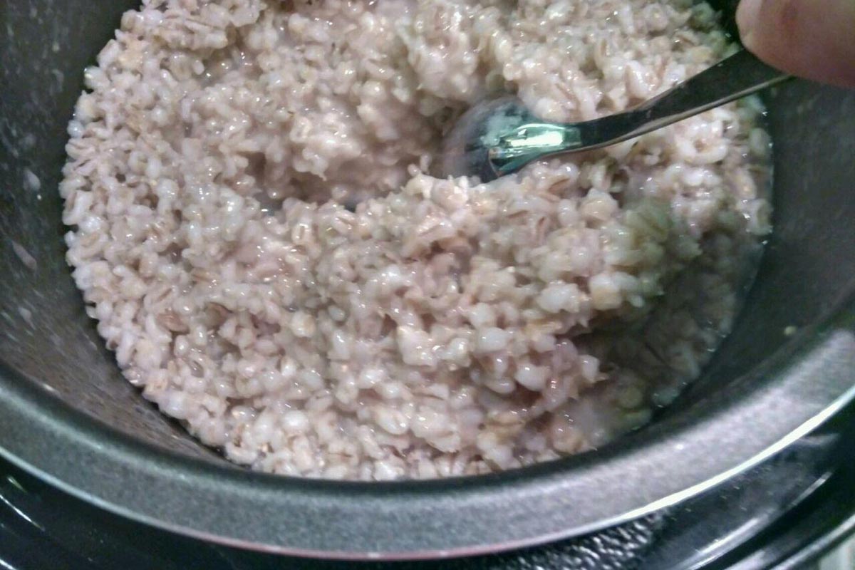 Il est important de s'assurer que l'orge perlé ne s'enfuit pas - pour éviter cela, il est nécessaire de ne pas charger trop d'orge perlé et d'eau dans le multicuiseur (maximum 1 verre d'orge et 3 verres d'eau dans une capacité de 3 litres du multicuiseur).