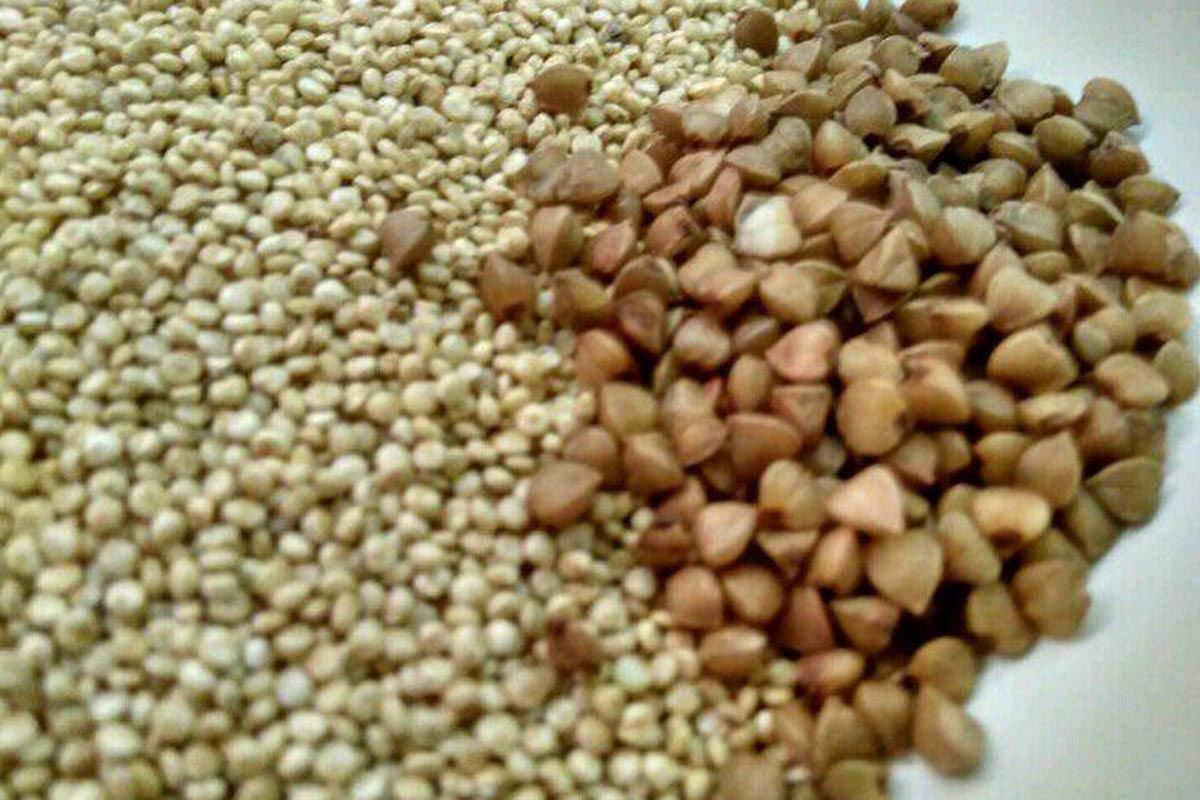 Sur la photo, le quinoa cru est visuellement comparé au sarrasin: