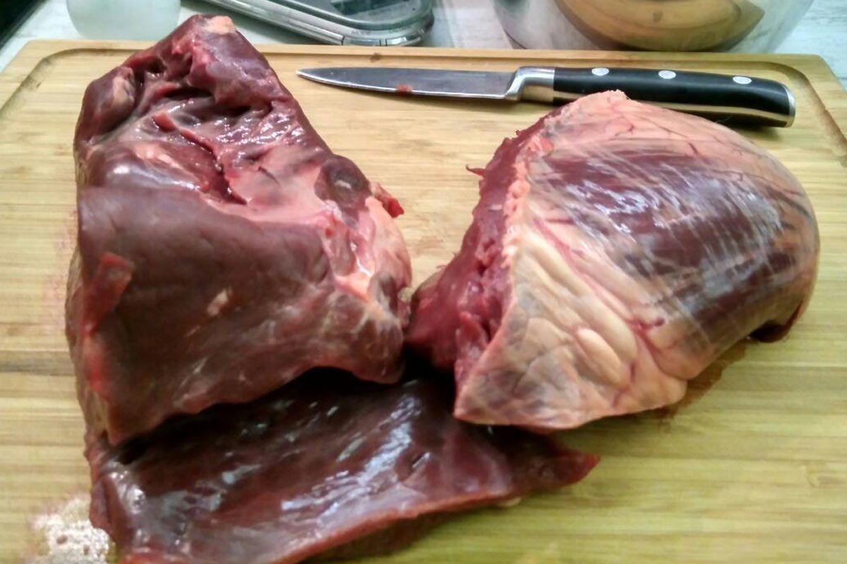 1. Rincez le cœur de bœuf du sang sous l'eau courante. Ensuite, si nécessaire, coupez-les en morceaux qui rentrent librement dans la casserole ou faites cuire ensemble. Le cœur est recouvert d'une couche de graisse - il est plus facile de le retirer du cœur bouilli, alors ne le touchez pas avant la cuisson.