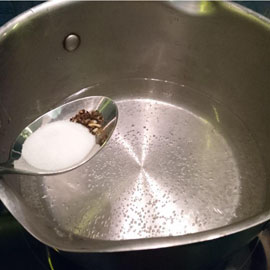 - Mettez une casserole avec 400 ml d'eau (2 tasses) à feu vif, ajoutez du sel et du poivre. Ajoutez du jus de citron si désiré.