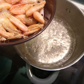 - Ajouter les 320 grammes de crevettes à l'eau bouillante poivrée salée.
