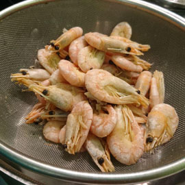 3. Acheter crevettes pelées - c'est possible non seulement s'il n'y a absolument pas de temps. À partir de 3 kilogrammes de crevettes non pelées, environ 1 kilogramme de crevettes pelées se révélera, tandis que le prix des crevettes pelées est à peine au moins trois fois plus élevé. :)